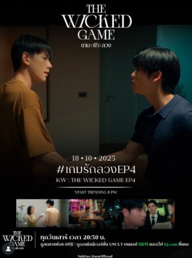 THE WICKED GAME เกมรักลวงย้อนหลัง EP.4 วันที่ 18 ตุลาคม 2568. ดู #เกมรักลวง EP.4 ทุกวันเสาร์ เวลา 20:30 น. ทางช่อง One31 ดูออนไลน์เวอร์ชัน UNCUT เวลา 21:30 น. บนแอป iQIYI